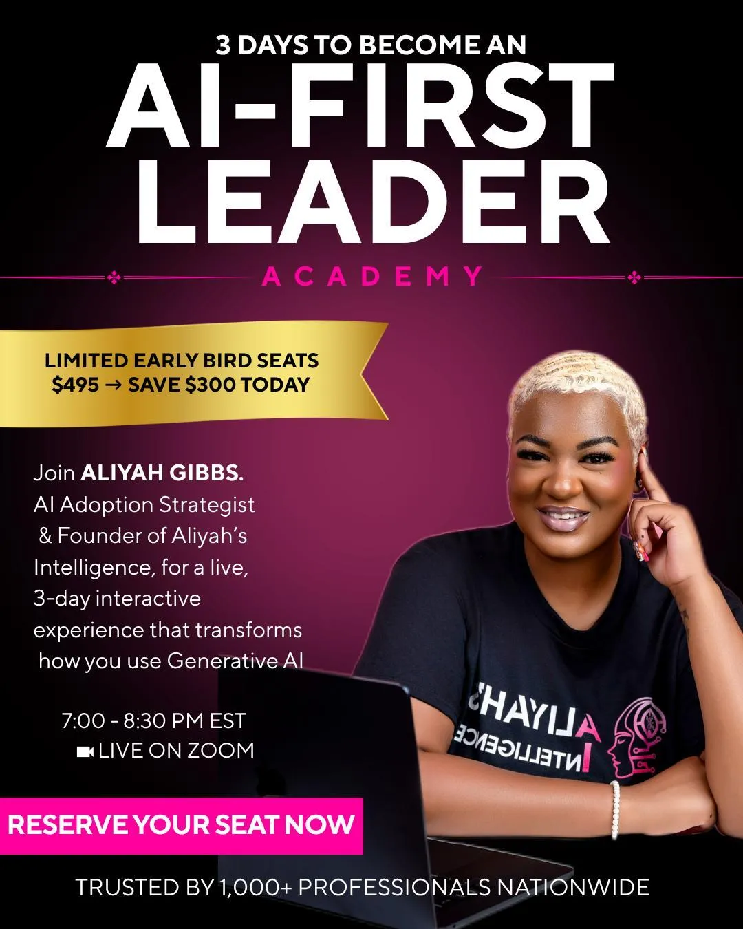 Join the 3-Day AI-First Leader Academy and go from overwhelmed to unstoppable — even if you’re new to AI.